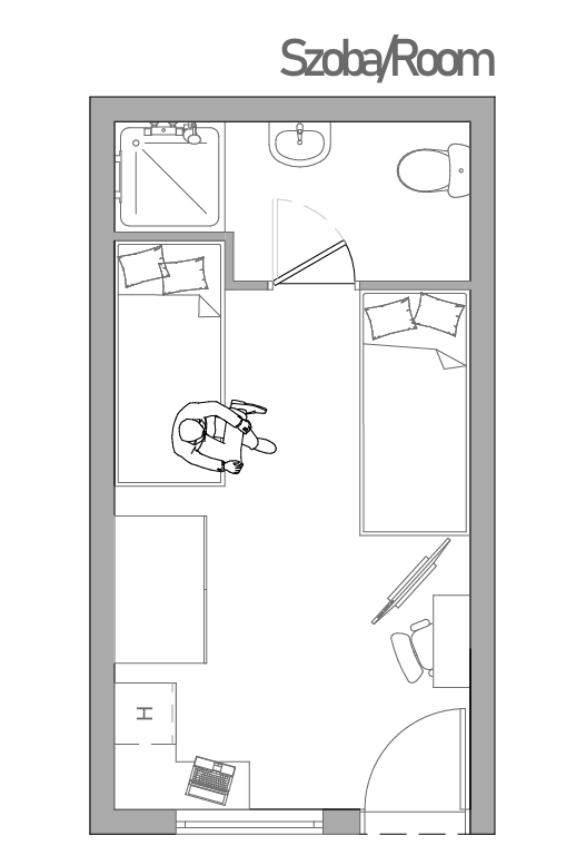 9012 Győr, Hegyalja út 2. szám alatt található legújabb prémium apartmanunk, ami 2024 szeptembertől várja cégek középvezetőit és magasabb beosztásban dolgozó kollégáit. Férőhely:21 fő Szobatípus:9db 2 ágyas és 1db 3 ágyas szoba Felszereltség:Kényelmes ágy, zuhanyzó minden szobában, TV, internet, közös konyha, légkondícionáló
